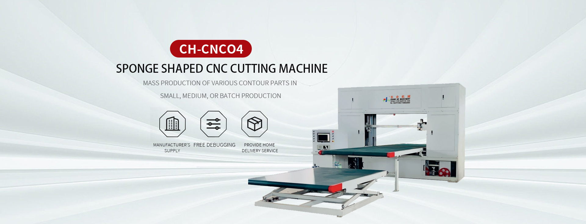Professional production and marketing of "CH" brand of sponge machinery products, the main sponge foam machinery, sponge cutting machinery, special-shaped cutting machinery products.